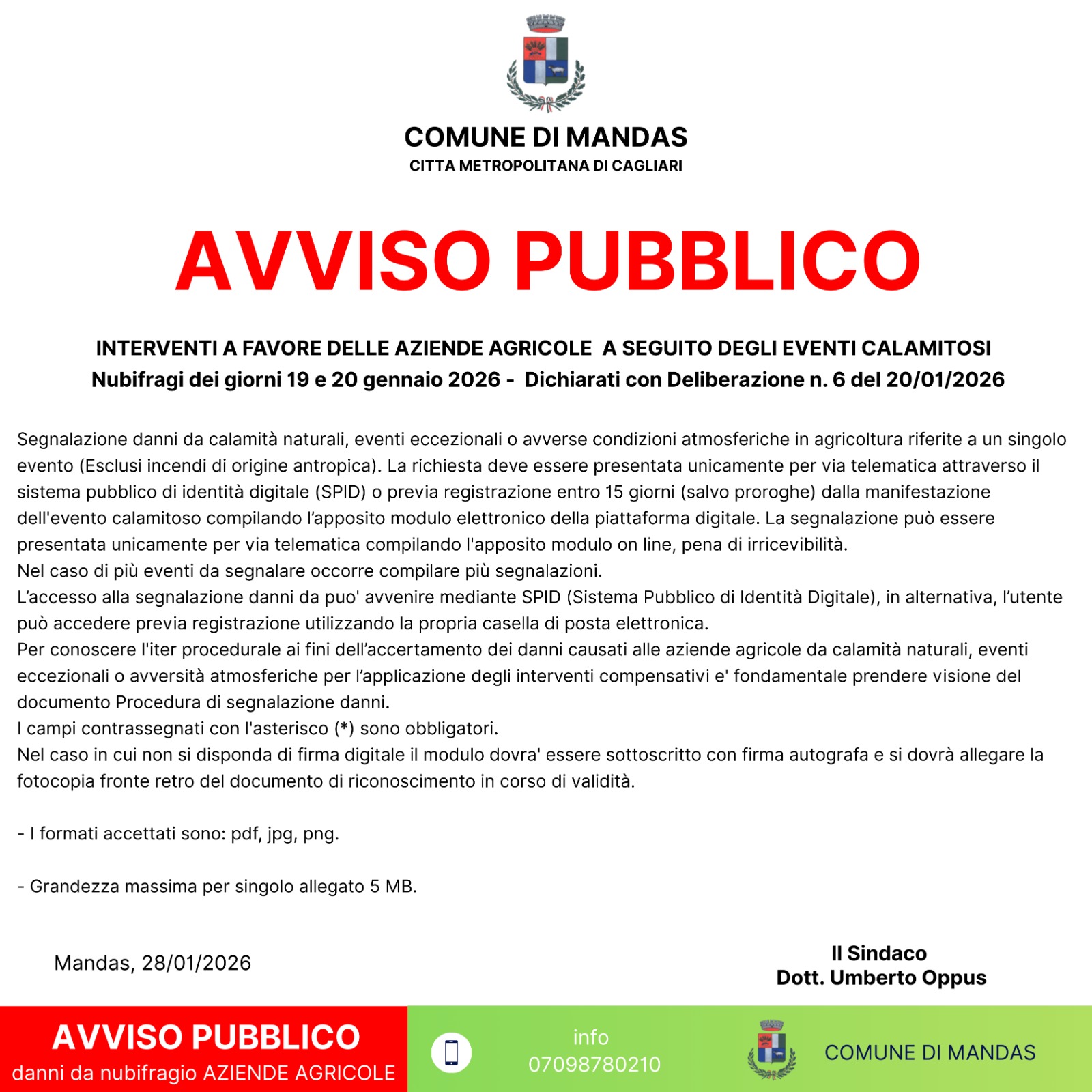 Avviso pubblico. Interventi in favore delle aziende agricole dannegiate a seguito degli eventi calamitosi